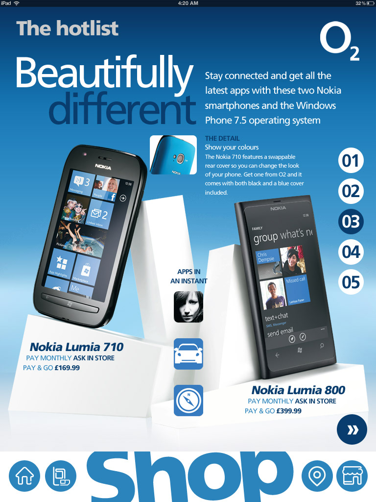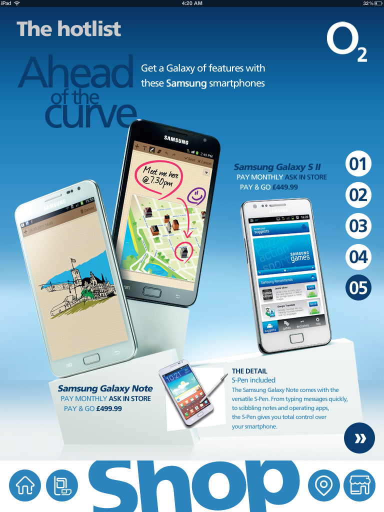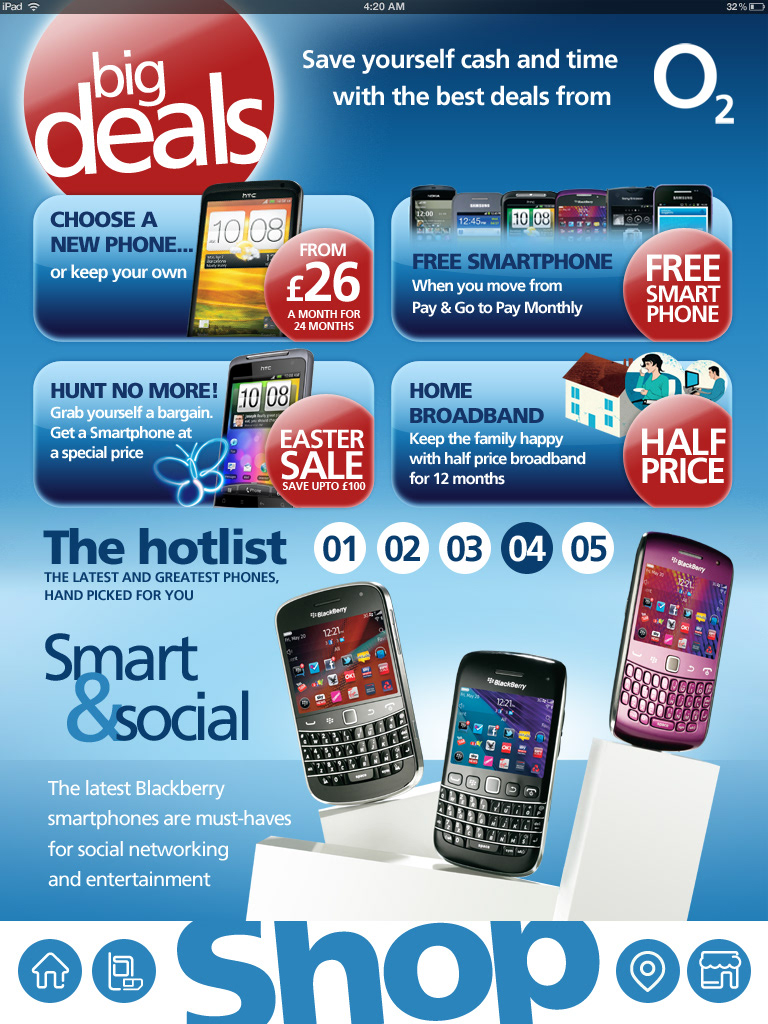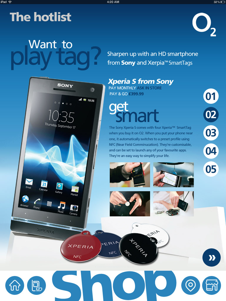 Interface design for O2's tablet version of their news magazine